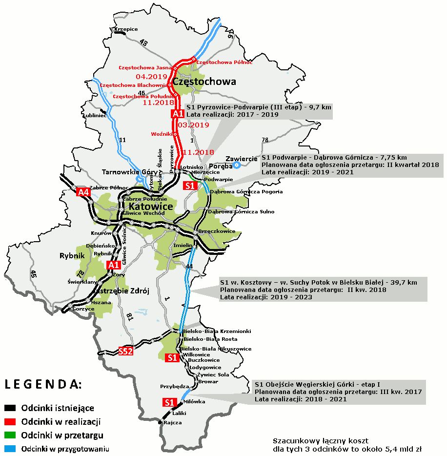 Trzy odcinki S1 na Śląsku idą do realizacjiMinister infrastruktury i budownictwa Andrzej Adamczyk, skierował do realizacji trzy fragmenty drogi ekspresowej nr 1 w województwie śląskim. Chodzi o odcinki: Podwarpie – Dąbrowa Górnicza, Kosztowy – Bielsko-Biała oraz obejście Węgierskiej Górki.
