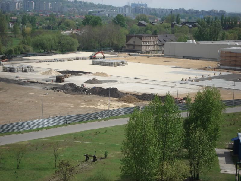 Ciekawe ile czasu beda jeszcze zurawie. Znajduja sie wewnatrz budowy i bez demontazu nie mozna skonczyc ani pietrowej czesci CH, ani czesci kinowej. Moze jednak poloza czesc dachow obok gdzie sie da. Chyba ze przeniosa ktorys obok i zostalby do budowy drugiego bydynku na miejscu kamienicy.