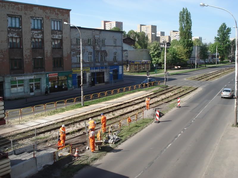 No jeśli chodzi o postępy to zawsze jakieś są - dziwi mnie troche to oznakowanie Policji - bo i tak muszą to wyburzyć więc chyba na razie nie będą tego robić - stąd te oznakowania. Szkoda też że nie zaczeli wbijać pali pod kładkę - widać tylko że wszystko już przygotowane - pewno zaczną na dniach. Prawdopodobnie od 12.05 ma zaczać się przebudowa sobieskiego wraz z torami tramwajowymi. Cały remont ma trwać 80 dni i na czas remontu powstaną tymczasowe przystanki (2x2) no i będzie 1 tor z sygnalizacją świetlną (ruch wachadlowy). To tyle.