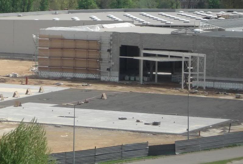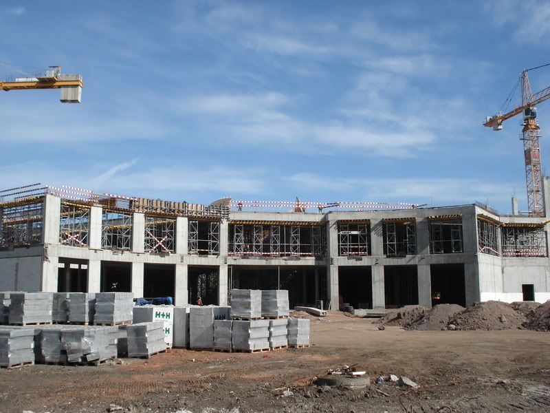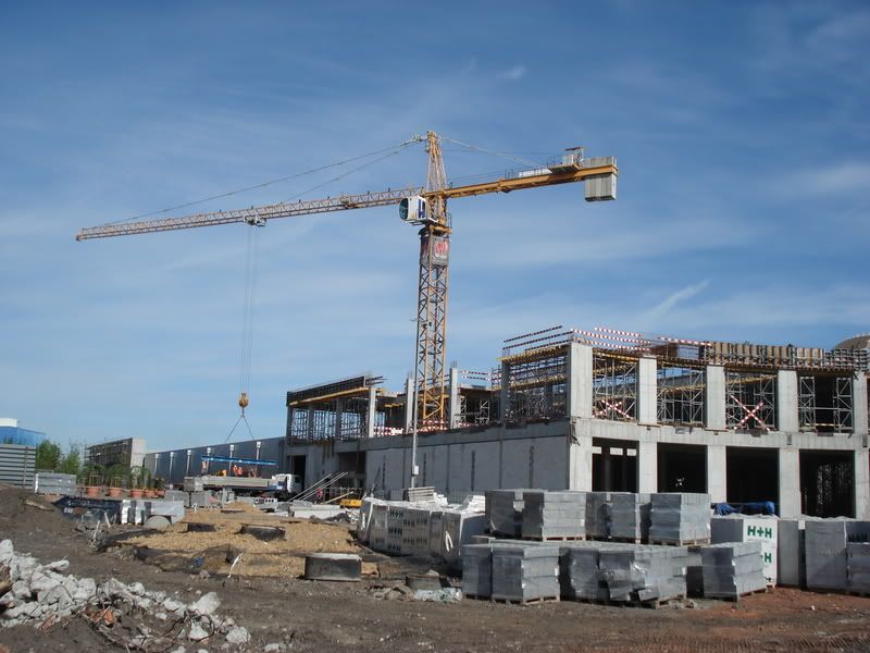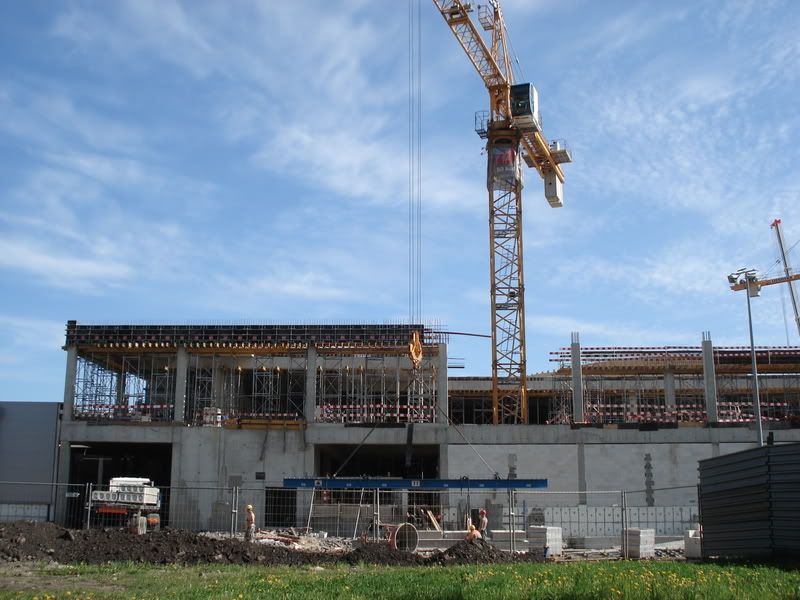 Ten wielki dzwig posluzyl do zamontowania wielkich i bardzo grubych dzwigarow podtrzymujacych dach czesci kinowej. Z ta czescia poszli bardzo do przodu. Do "zamkniecia" czesci kinowej brakuje dachu i kawalka sciany od strony CH. "Pozostala" czesc pietrowa do przodu ale wolno.